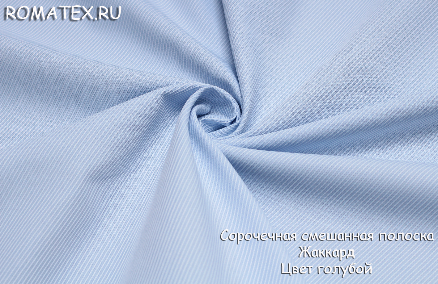 Ткань сорочечная полоска жаккард цвет голубой